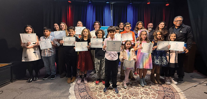 Our annual talent show took place on January 9, 2026, at the Iranian American Center. More than 25 students participated this year, predominantly in music performances. They played piano, violin, santour, and flute, and included several vocal contestants. One student performed a mime. The performances were judged by Farhad Bahrami, Kourosh Taghavi, and Nushin Baradaran. The Center was packed with parents, friends, relatives, and supporters of our young performers. The performers listened to the judges’ comments, which were supported by the audience. Several students were selected to perform at the ISSD Nowruz celebration on March 8, 2026. At the end, all participants received a certificate of achievement.