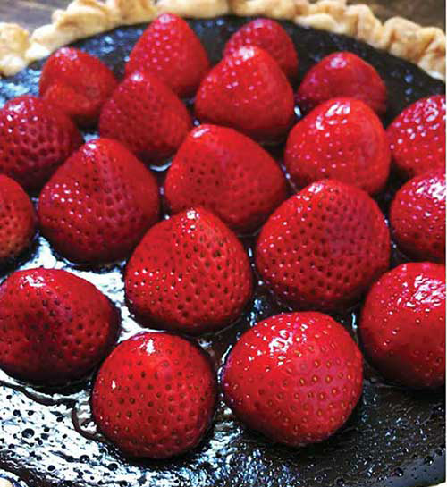 5.  Chill pie for 30 minutes. Top pie with strawberries, points up.